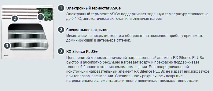 До найбільш цікавим можливостям нагрівачів Spot E-5 слід віднести наявність цифрового термостата і додаткового гнізда для касети управління. Термостат, який відрізняється Високою точністю регулювання температурних режимів, дає відчутну економію витрат електроенергії. Касета управління дозволяє компонувати такі електроконвектори в єдину систему опалення. Як програмує касети використовується Memoprog 2, яка передає сигнали синхронізації режимів за спеціальному кабелю. Обігрівачі підключаються до нього паралельно.