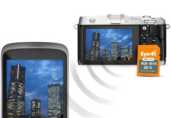 Карта Eye-Fi дозволяє автоматично завантажувати зображення за бездротовій мережі WiFi. Завдяки сумісності з камерою цю карту можна включити або виключити безпосередньо в меню настройки. Коли необхідно, ви можете надати прямий доступ до ваших знімків і відеороликів з інших пристроїв. Їх можна перенести на Мобільний пристрій і поділитися ними з друзями і родичами в соціальних мережах.