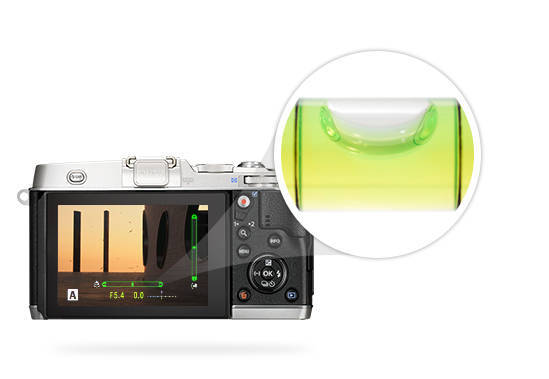 Ця корисна функція дозволить вам фотографувати або знімати ролики без «завалювання» горизонту. На дисплеї камери відображається кут нахилу камери за відношенню до видимого горизонту.