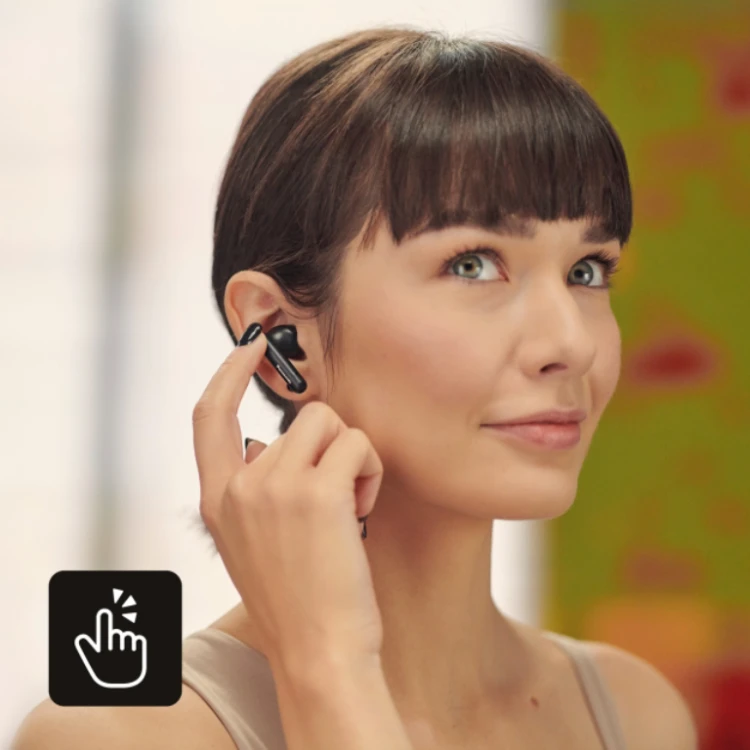 За допомогою сенсорних датчиків на обох навушниках B110W ви можете швидко перемикатися між музикою та викликами, а також вибирати голосовий помічник або перемикати треки.