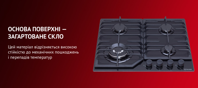 Варильна поверхня виготовлена ??з високоякісного загартованого скла чорного кольору. Цей матеріал дуже стійкий до механічних пошкоджень та перепадів температур. Крім того, загартоване скло особливо легко у догляді.