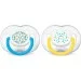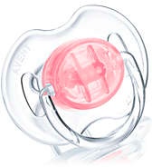 Плоскі симетричні соски пустушок Philips Avent каплевидної форми враховують будову і природний розвиток неба, зубів і ясен малюка і гарантують комфорт, навіть якщо пустушка перевертається в роті. Всі пустушки Avent виготовлені з силікону, не мають смаку і запаху. Їх можна стерилізувати і навіть мити в посудомийній машині. Завдяки відсутності в складі силікону бісфенолу-А соски цих пустушок повністю безпечні для немовляти.