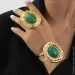 Відгуки Комплект прикрас Браслет та кільце Золотистий c темно-зеленої вставкою BK361-DG