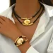 Комплект украшений на шнурке Чокер и браслет с металлическими овалами Золотистый BK834-G