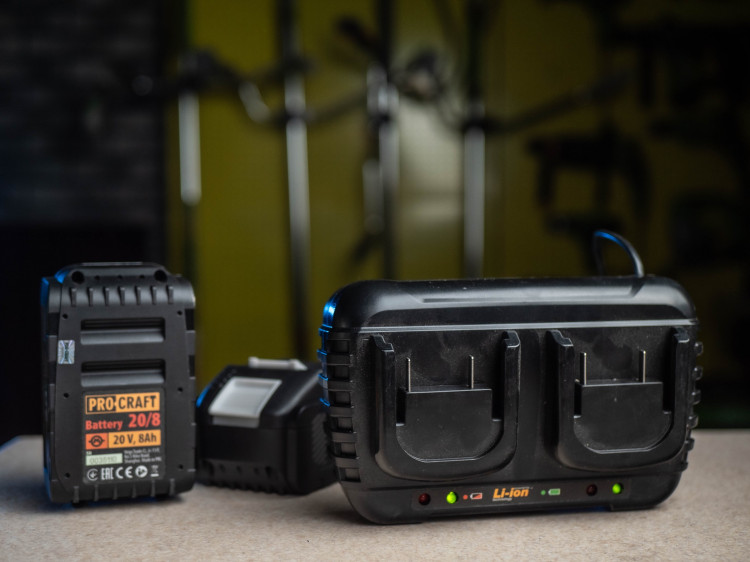 Зарядний пристрій Procraft взаємодіє з електронікою акумулятора та максимально оптимізує процес заряджання. Кожен із заряджених акумуляторів контролюється окремо, що унеможливлює неправильну зарядку. Коли заряд досягне 100%, індикатор стане зеленим і зарядний пристрій підтримуватиме лише максимальний заряд акумулятора.