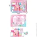 У комплекті є: палетка з різнокольоровими тінями для повік, рум'янами та дзеркальцем, аплікатори та пензлик для макіяжу, а також 3 лаки для нігтів, роздільник для пальців, різнокольорові наклейки на нігті та великий фломастер – блиск для губ 4 кольорів.