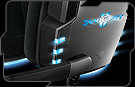 На правом динамике расположены кнопки регулирования громкости наушников, громкости «разговора» через микрофон, а также кнопка включения микрофона. Кнопки были размещены в местах, которые обеспечивают удобное, и интуитивно понятное управление. Кроме кнопок, динамики имеют элементы подсветки, работающие совместно с системами «предупреждения» и APM, о которых расскажу чуть ниже. Недостатком подсветки является ее слишком большая интенсивность свечения. Свет отражается в мониторе и отвлекает игрока.