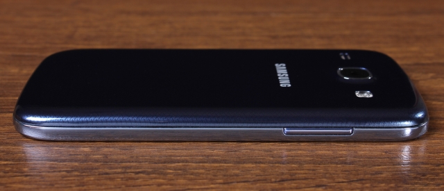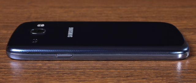 Боковины смартфона Samsung Galaxy Core i8262 так же, как и весь корпус устройства, выполнены из пластика. На правой боковой грани расположена кнопка блокировки/питания, на левой - спаренная кнопка регулировки громкости мультимедийного динамика. На нижней боковине размещены отверстие разговорного микрофона и microUSB-разъем. На верхней боковой грани смартфона Samsung Galaxy Core i8262 находится только аудиовыход.