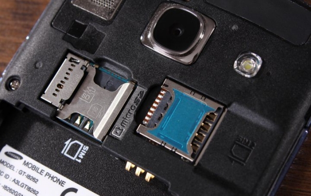 Под крышкой аккумуляторного блока размещены два слота для установки сим-карты и слот для карты памяти. «Горячая» замена первой сим-карты и карты памяти не поддерживается, так как при вставленном аккумуляторе доступ к ним перекрыт. Вторую сим-карту можно заменить, не выключая девайс.