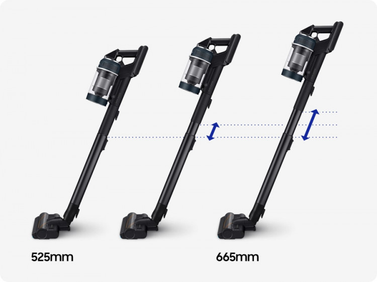 Легкий дизайн забезпечує максимальну зручність та зменшує навантаження на зап'ястя. Вага корпусу, який утримується в руці під час збирання, складає всього 1,44 кг, що на 24% менше від традиційних пилососів Samsung. Ви легко можете прибрати весь будинок.