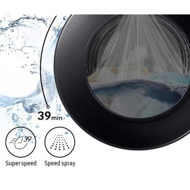 Зменшіть час щоденного прання та отримуйте чистий одяг. У режимі Супершвидкість прання одного завантаження білизни займає лише 39 хвилин*. Технологія QuickDrive заощаджує час, динамічно перемішуючи одяг, а Ecobubble забезпечує ефективне очищення. Час полоскання скорочується за рахунок використання функції Speed ??Spray, а швидкість віджимання збільшується.