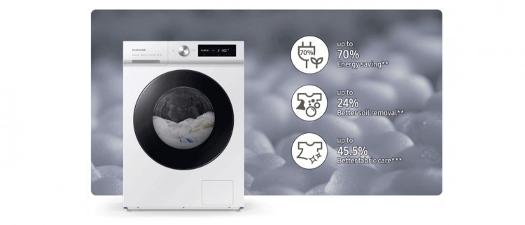 Насолоджуйтесь ефективнішим пранням із функцією AI Ecobubble*. Вона створює бульбашки, які видаляють на 24%** більше забруднень навіть за низьких температур, заощаджуючи 70% енергії** та забезпечуючи на 45.5% кращий догляд за тканиною***. Вона також визначає тип тканини та оптимізує кількість бульбашок, час прання, температуру та швидкість віджиму.