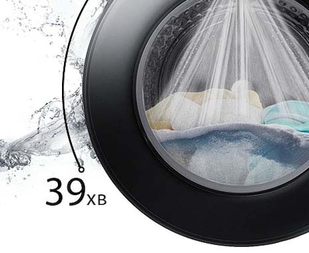 * Випробування проводилися згідно з IEC 60456-2010 із завантаженням 4 кг при пранні за програмою Super Eco Wash у холодній воді (WF80F5E5U4W), результати порівнювали з пранням за програмою для бавовни при температурі 40 °C без технології EcoBubble (KUF07). В окремих випадках результати можуть відрізнятись.