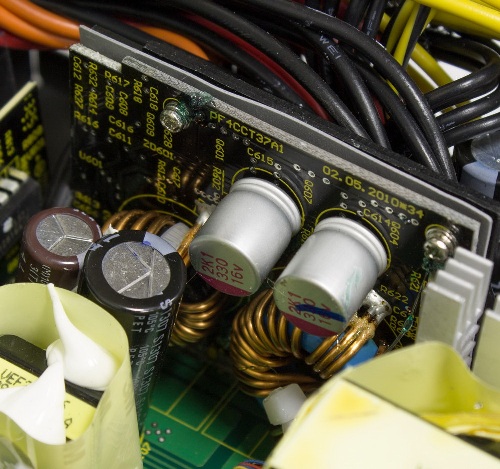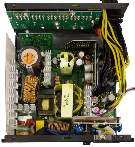 Основна друкована плата має відносно невелику площу з вільною компонуванням елементів, Завдяки чому на її поверхні досить багато незатребуваного місця. Це повинно благотворно позначитися на протіканні всередині блоку живлення повітряних потоків від вентилятора системи охолодження, що дозволить інженерам компанії зменшити його обороти без шкоди для ефективності.