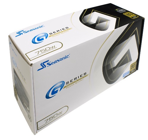 Блок живленняSeasonic 750W SSR-750RMпоставляється в стандартній для нової серії білосніжною упаковці зі стилізованою літерою «G». Єдиною відмінністю від упаковок інших моделей, що мають приналежність до даної серії, є вказаний на лицьовій стороні рівень потужності, зрослий до 750 Ватт. Коробка зроблена з щільного картону, надійно оберігає вміст від ударів. В оформленні використані відтінки золотого, блакитного і чорного кольорів. їх Застосування, за заявою розробника, символізує приналежність до енергоефективного стандарту «80 PLUS Gold», доступною серії «G» з фірмовою лінійки компанії, а також високу якість виконання вкладеного вироби. Тепер виробник став розміщувати на лицьовій стороні коробки спеціальну наклейку з написом «Intel Haswell Ready», що говорить про повну сумісність з новітнім поколінням процесорів «Intel Haswell». Боковина коробки містить коротку специфікацію товару. У ній є Інформація щодо електричних параметрів, системи захисту, рівня ефективності, довжини і числа конекторів кабельної системи, зображення якої користувач може детально розглянути на протилежній боковині коробки.