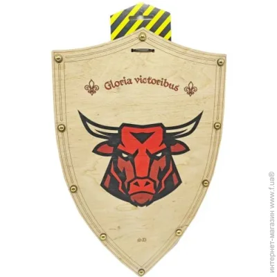 Модель щита з фанери (товщина 6 мм.). Лицьова сторона прикрашена зображенням; є декоративні елементи на корпусі; 2 ручки на зворотному боці щита. Розмір 47х30 см.