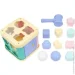 Оригінальна іграшка-сортер у вигляді будиночка, всередині якого знаходяться фігурки, які потрібно вставити у відповідні отвори. Також на одній із сторін будиночка є шестерня, яку можна крутити, а на даху будиночка розташовані два круглі отвори, в які дитина зможе забивати молоточком кульки. Мотолочок є в комплекті. Розмір будиночка: 14х14х12 см.