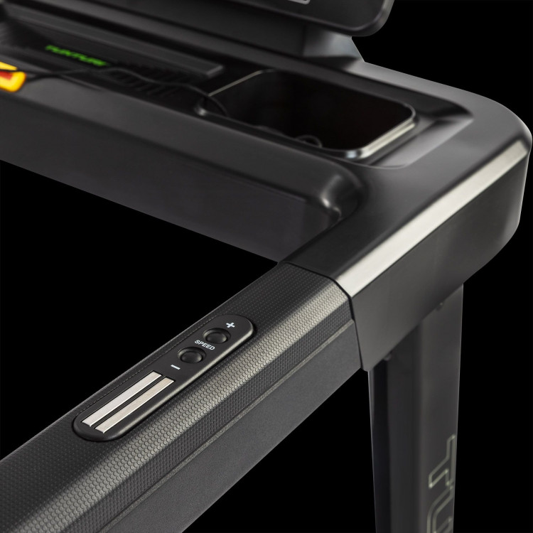Щоб не дотягнутися до кінця, щоб контролювати швидкість або кут нахилу, бігова доріжка T20 (2020) оснащена кнопками швидкого керування на підлокітниках. На лівому підлокітнику можна легко регулювати кут нахилу, а на правому підлокітнику швидкість, натискаючи «+» або «-».