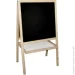 Особливості | два види поверхонь, одна з яких чорна, призначена для малювання крейдою, а друга - біла з полімерним покриттям, за яким дуже добре водити маркерами на водній і сухостираємій основі, або кріпити папір за допомогою магнітів; робоча поверхня – 60х60 см; висота від підлоги до верхньої точки мольберту – 110 см; висота від підлоги до початку поверхні – 55 см; поличка; двостороння; з полицею |