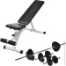 Vidaxl Лава для фітнесу зі штангою та набором гантелей 30,5 кг чорна (M-6574911)