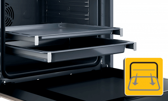 Тому духові шафи оснащені телескопічними напрямними, які забезпечують стійкість посуду, простоту вилучення та додаткову безпеку.