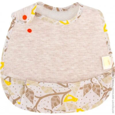 Нагрудник виготовлений зі 100% натуральних матеріалів: об'ємний стьобаний трикотаж (100% бавовна) з одного боку та 100% бавовна у вигляді махрової тканини (100% бавовна) з іншого боку.