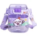 Для комфортной переноски бутылка оснащена ремешком, благодаря которому ее можно носить на плече или прикреплять к рюкзаку. Яркий дизайн и удобная конструкция делают ее практичным аксессуаром для детей в повседневной жизни.