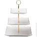 Конструкция с металлической ножкой обеспечивает прочность и устойчивость изделия, что делает его практичным для повседневного и праздничного использования. На трех ярусах расположены квадратные тарелки размером 25 см, 21 см и 15 см, что предоставляет пространство для сервировки различных вкусностей. Это позволяет удобно организовать десерты или фрукты по категориям и создать опрятный вид стола.