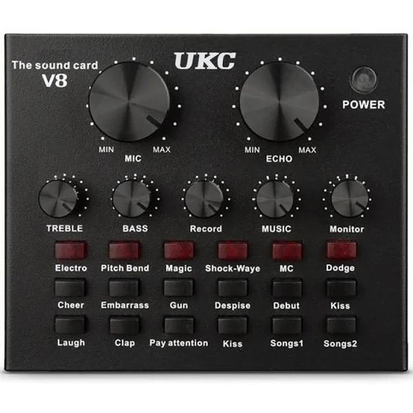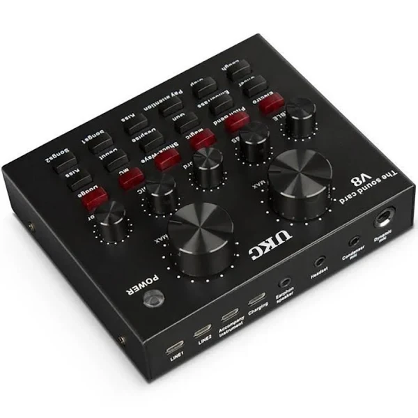 Звуковая карта V8 – это качественная профессиональная звуковая карта, с 12 звуковыми эффектами и с 6 видами режимов эффектов голоса. Этот прибор пригодится в студии звукозаписи, при озвучивании фильмов или во время домашней записи. Функционал подразумевает регулировку частот, громкости звука и записи, громкости наушников и микрофонов, регулировку эха. Совместимость с ПК, планшетом, микрофоном, мобильным телефоном, наушниками
