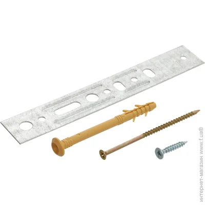 Комплектация | шуруп 4х25 мм 6 шт; дюбель 6х80 мм 12 шт; анкерная пластина 6 шт; саморез 4,2х22 мм 6 шт |