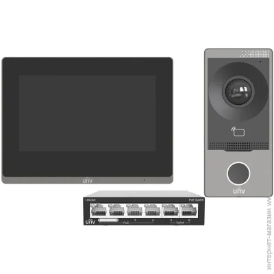 Комплект видеодомофона + коммутатор PoE на 4 интерфейса