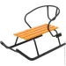 Особенности | Полозья круглые d 25 мм; Стальная труба d 20 мм и d 16 мм. Покрашенные в черный цвет поошковой краской; Сидение изготовлено из твердых пород дерева, покрашенное в оранжевый цвет |