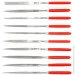 В набор входит 10 фигурных надфилей: плоский – 2 шт., полукруглый, круглый, треугольный – 3 шт., квадратный, линзовидный, овальный.
